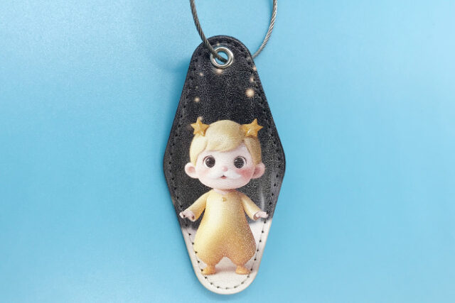 丸みのあるイラストがかわいいPUレザーキーホルダー