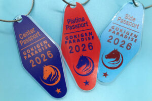 馬のシルエットと鮮烈カラーが目を引くアクリルモーテルキーNew!!